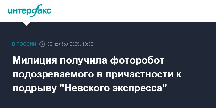 Москва. 30 ноября. INTERFAX.RU – Правоохранительные органы распространили фоторобот предполагаемого преступника, который мог совершить подрыв поезда "Невский экспресс", сообщил "Интерфаксу" источник в силовых структурах.