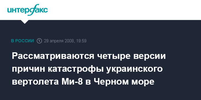 Рассматриваются четыре версии причин катастрофы украинского вертолета Ми-8 в Черном море