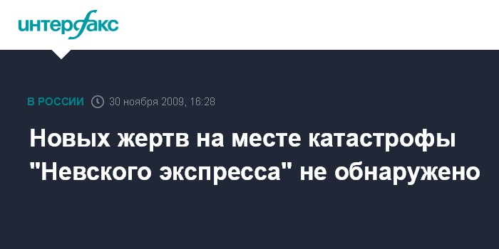Москва. 30 ноября. INTERFAX.RU - На месте крушения "Невского экспресса" не найдено новых жертв, заявил в понедельник на пресс-конференции в Твери губернатор региона Дмитрий Зеленин. "Сегодня на месте происшествия поднят вагон №2. Данных по новым жертвам нет", - отметил губернатор.