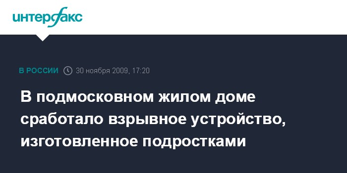 В подмосковном жилом доме сработало взрывное устройство, изготовленное подростками