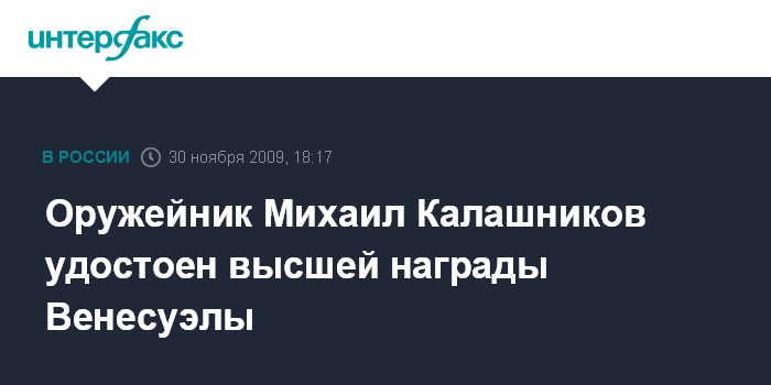 Оружейник Михаил Калашников удостоен высшей награды Венесуэлы