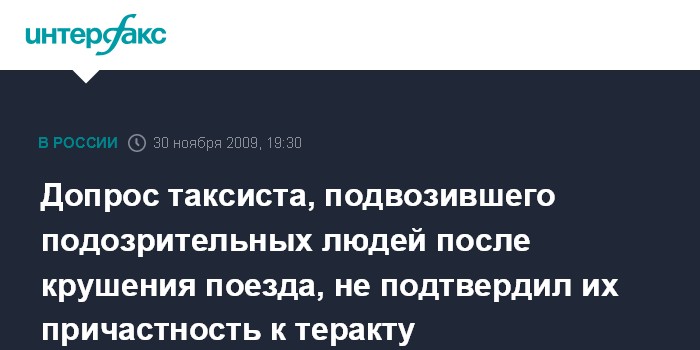 Допрос таксиста, подвозившего подозрительных людей после крушения поезда, не подтвердил их причастность к теракту