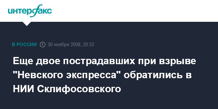 Еще двое пострадавших при взрыве "Невского экспресса" обратились в НИИ Склифосовского