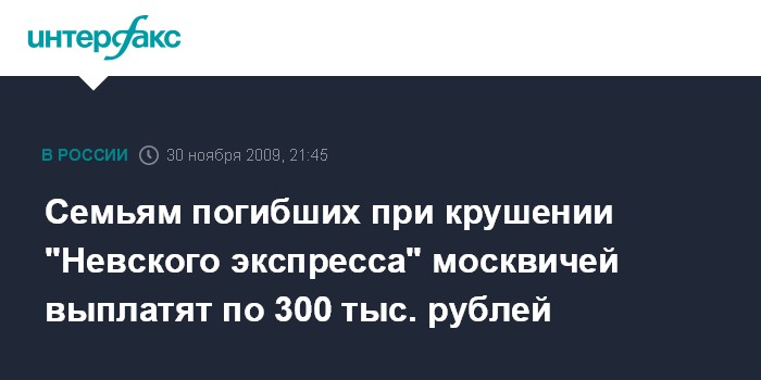Cемьям погибших при крушении "Невского экспресса" москвичей выплатят по 300 тыс. рублей