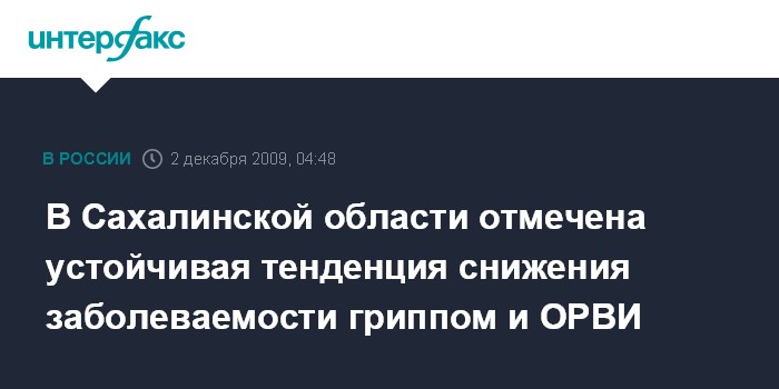 Южно-Сахалинск. 2 декабря. ИНТЕРФАКС-ДАЛЬНИЙ ВОСТОК - Эпидемиологи Сахалинской области считаю, что пик заболеваемости ОРВИ и гриппом в регионе пройден.