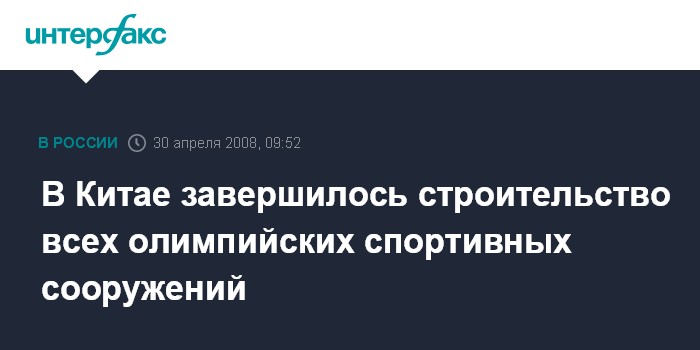 Пекин. 30 апреля. INTERFAX.RU - Пекин в строго соответствии с графиком завершил строительство и оборудование всех спортивных объектов и сооружений, на которых будут проходить соревнования и тренировки спортсменов-олимпийцев, сообщили в среду официальные китайские СМИ.
