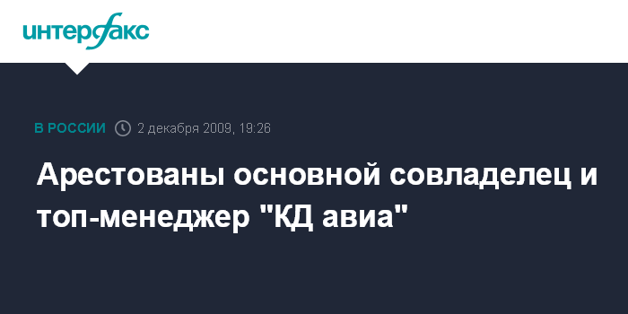 Арестованы основной совладелец и топ-менеджер "КД авиа"