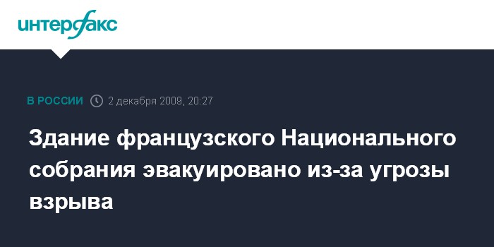 Париж. 2 декабря. INTERFAX.RU - Эвакуация французского Национального собрания (нижняя палата парламента - ИФ) проведена в среду вечером после получения сообщения о том, что в здании может быть заложена бомба, сообщает газета "Либерасьон".