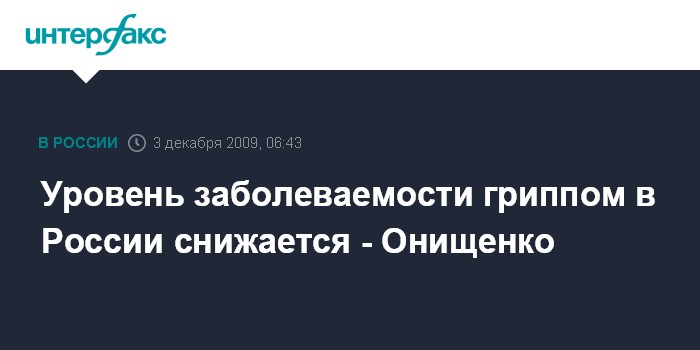 Уровень заболеваемости гриппом в России снижается - Онищенко