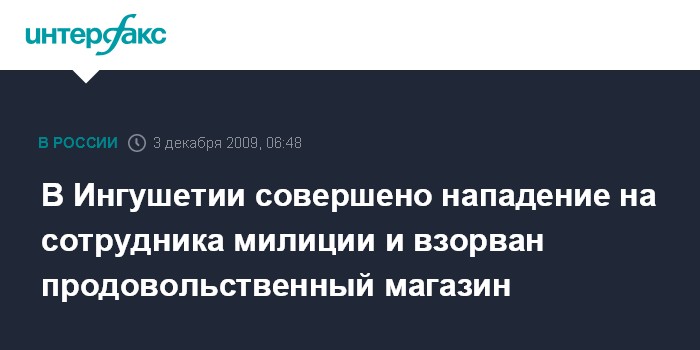 В Ингушетии совершено нападение на сотрудника милиции и взорван продовольственный магазин