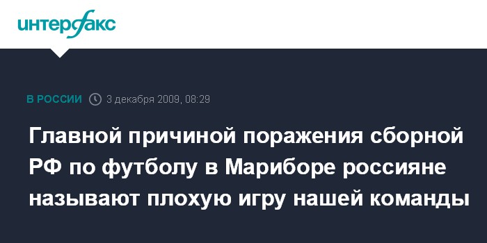 Мнение россиян, информированных о результате матча в Мариборе, чаще всего сводится к общей негативной оценке игры нашей сборной (39%). Еще 17% объясняют неудачу недооценкой возможностей противника, а 9% сетуют на недостатки мастерства футболистов и просчеты тренерского штаба.