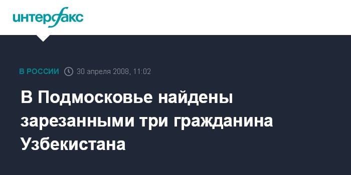 Москва. 30 апреля. INTERFAX.RU - В Подмосковье убиты трое граждан Узбекистана, сообщил "Интерфаксу" в среду источник в правоохранительных органах.