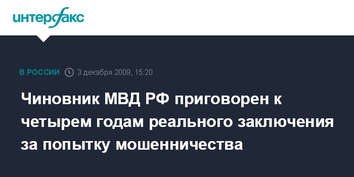 Чиновник МВД РФ приговорен к четырем годам реального заключения за попытку мошенничества