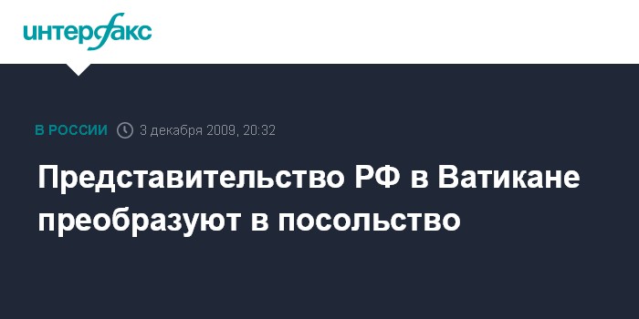 Представительство РФ в Ватикане преобразуют в посольство