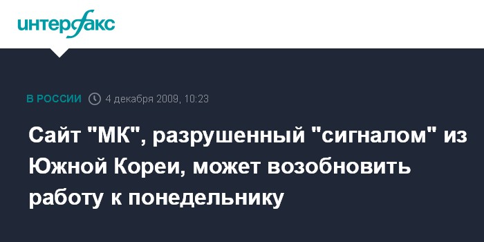 Сайт "МК", разрушенный "сигналом" из Южной Кореи, может возобновить работу к понедельнику