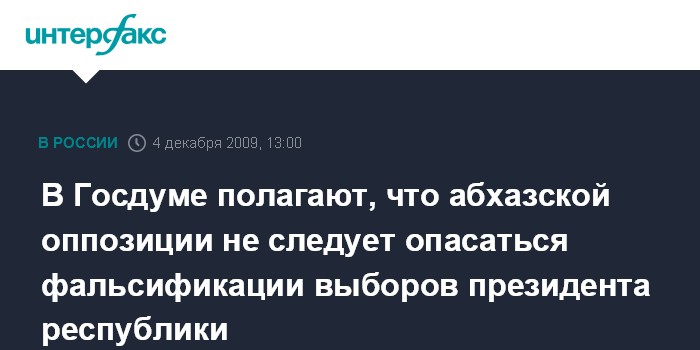 В Госдуме полагают, что абхазской оппозиции не следует опасаться фальсификации выборов президента республики