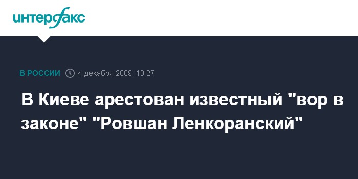 Киев. 4 декабря. INTERFAX.RU - Голосеевский районный суд Киева в пятницу избрал меру пресечения - содержание под стражей до 40 суток - гражданину Азербайджана, "вору в законе", известному в уголовном мире как "Ровшан Ленкоранский".