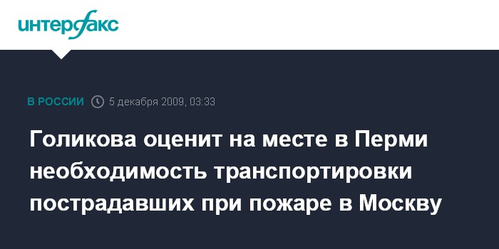 Голикова оценит на месте в Перми необходимость транспортировки пострадавших при пожаре в Москву
