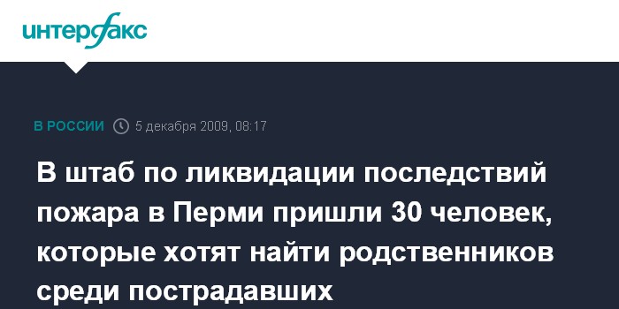 Пермь. 5 декабря. INTERFAX.Ru - Списки пострадавших при ночном пожаре в пермском ночном клубе начали уточнять утром в субботу в Культурно-деловом центре (КДЦ), где развернут штаб по ликвидации последствий чрезвычайного происшествия.