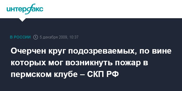 Москва. 5 декабря. INTERFAX.RU - Следствие очертило круг подозреваемых, которые могут быть виновны в возникновении пожара в пермском клубе-ресторане "Хромая лошадь", заявил "Интерфаксу" в субботу официальный представитель СКП РФ Владимир Маркин.