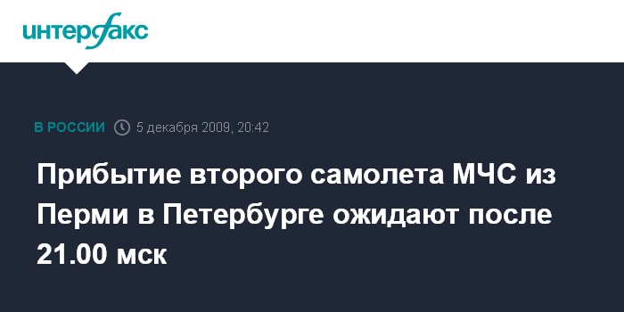 Санкт-Петербург. 5 декабря. INTERFAX.RU - Второй самолет МЧС, который доставит в Петербург пострадавших на пожаре в пермском клубе "Хромая лошадь", приземлится в Петербурге в субботу после девяти часов вечера. "Прибытие борта ожидается в 21.00 - в 21.30", - сообщили "Интерфаксу" в ГУ МЧС по Северной столице. По данным собеседника, самолет перевозит около 20 пострадавших.