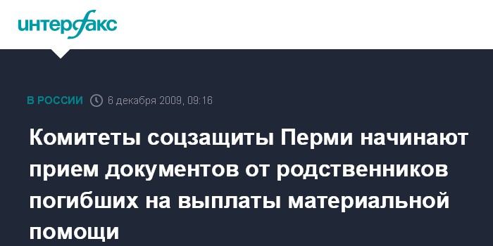 Комитеты соцзащиты Перми начинают прием документов от родственников погибших на выплаты материальной помощи