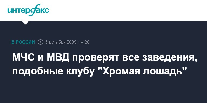 МЧС и МВД проверят все заведения, подобные клубу "Хромая лошадь"