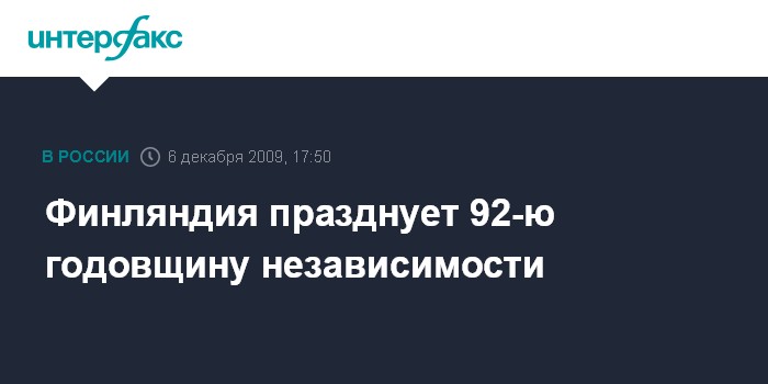 Хельсинки. 6 декабря. INTERFAX.RU - Финляндия в воскресенье отмечает 92-ю годовщину со дня объявления о создании независимого государства. По традиции день начался с подъема государственного флага в Хельсинки на горке Тяхтиторни. Затем в церкви Туомиокирко прошло богослужение, на котором епископ Симо Пеура призвал к социальному уважению и справедливости в условиях экономического кризиса. Вечером в Хельсинки пройдут шествия студентов и учащихся. Кульминацией праздника станет вечерний прием во дворце президента.