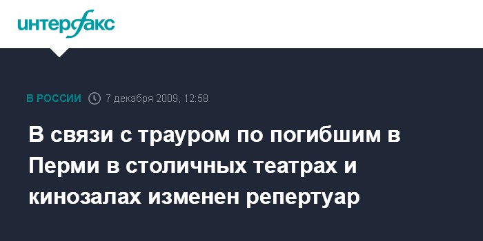 В связи с трауром по погибшим в Перми в столичных театрах и кинозалах изменен репертуар
