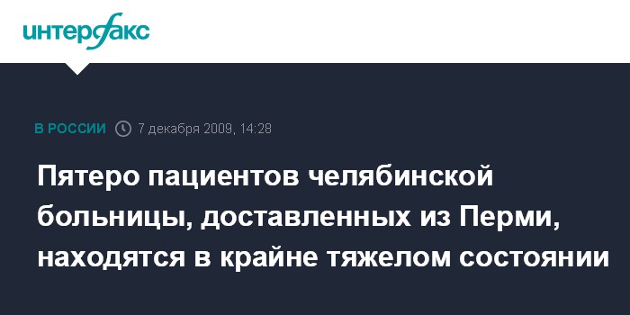 Пятеро пациентов челябинской больницы, доставленных из Перми, находятся в крайне тяжелом состоянии