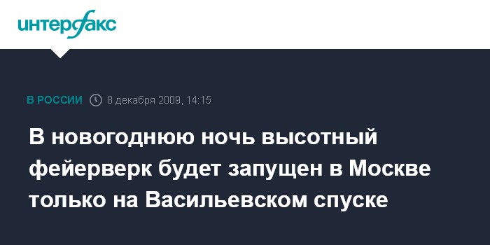 В новогоднюю ночь высотный фейерверк будет запущен в Москве только на Васильевском спуске