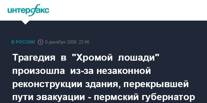 Трагедия в "Хромой лошади" произошла из-за незаконной реконструкции здания, перекрывшей пути эвакуации - пермский губернатор