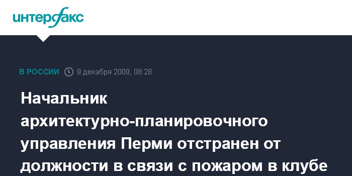 Начальник архитектурно-планировочного управления Перми отстранен от должности в связи с пожаром в клубе