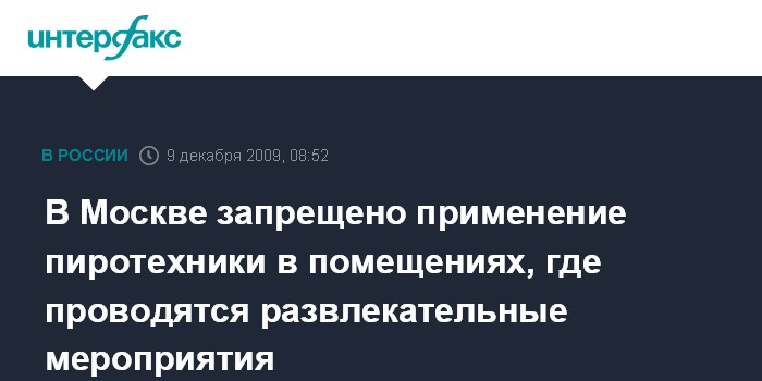 В Москве запрещено применение пиротехники в помещениях, где проводятся развлекательные мероприятия