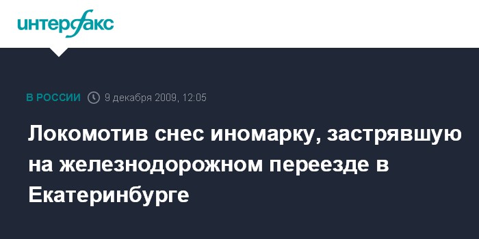 Москва. 9 сентября. INTERFAX.RU - В Екатеринбурге в ночь на среду на железнодорожном переезде у дома N57 на Сибирском тракте на путях застрял "Митцубиси Лансер". В итоге задняя часть иномарки была снесена проходившим локомотивом.