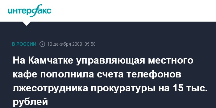 На Камчатке управляющая местного кафе пополнила счета телефонов лжесотрудника прокуратуры на 15 тыс. рублей