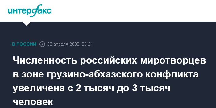 Численность российских миротворцев в зоне грузино-абхазского конфликта увеличена с 2 тысяч до 3 тысяч человек