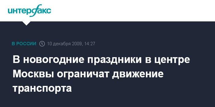 Москва. 10 декабря. INTERFAX.RU - В новогодние праздники в Центральном округе столицы будет ограничено движение автотранспорта, сообщил в четверг на пресс-конференции начальник управления ГИБДД Москвы Сергей Казанцев.