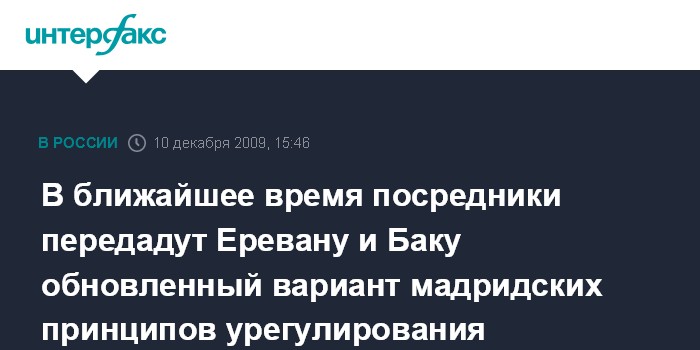 В ближайшее время посредники передадут Еревану и Баку обновленный вариант мадридских принципов урегулирования карабахского конфликта