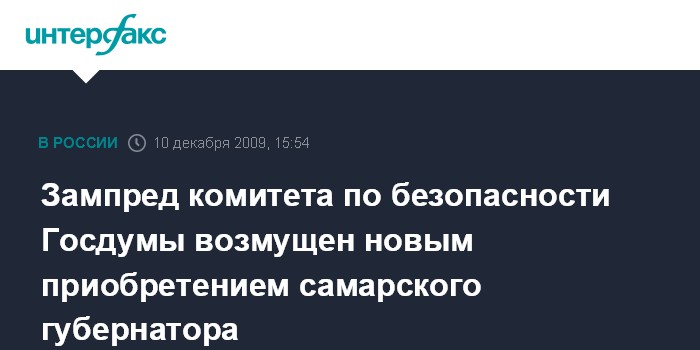 Зампред комитета по безопасности Госдумы возмущен новым приобретением самарского губернатора