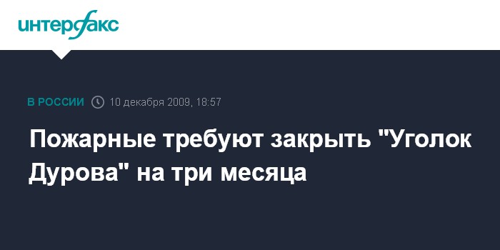 Москва. 10 декабря. INTERFAX.RU - Пожарный инспектор нашел нарушения в работе театра "Уголок дедушки Дурова" и просит приостановить эксплуатацию здания, где находится театр, на три месяца.