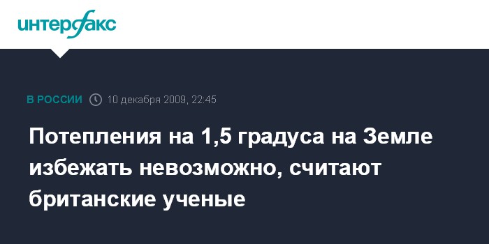 Лондон. 10 декабря. ИНТЕРФАКС - Выбросы парниковых газов необходимо сократить в ближайшие десять лет для того, чтобы удержать повышение температуры на Земле в пределах 2 градусов Цельсия, говорится в докладе, представленном в четверг Метеорологическим управлением Великобритании на климатическом саммите в Копенгагене.
