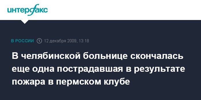 В челябинской больнице скончалась еще одна пострадавшая в результате пожара в пермском клубе