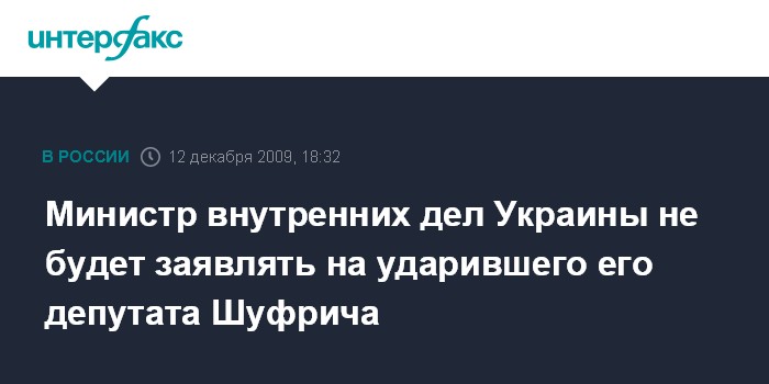 Москва. 12 декабря. INTERFAX.RU - Министр внутренних дел Украины Юрий Луценко не собирается подавать заявление на депутата Верховной Рады от Партии регионов Нестора Шуфрича в связи с произошедшим накануне инцидентом во время рекламной паузы в ток-шоу на телевидении, сообщила руководитель департамента по связям с общественностью и международной деятельности МВД Инна Кисиль.