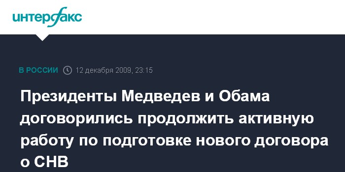 Президенты Медведев и Обама договорились продолжить активную работу по подготовке нового договора о СНВ