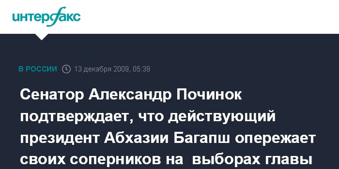 Сенатор Александр Починок подтверждает, что действующий президент Абхазии Багапш опережает своих соперников на выборах главы государства страны с большим отрывом