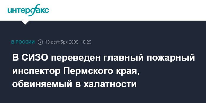 В СИЗО переведен главный пожарный инспектор Пермского края, обвиняемый в халатности