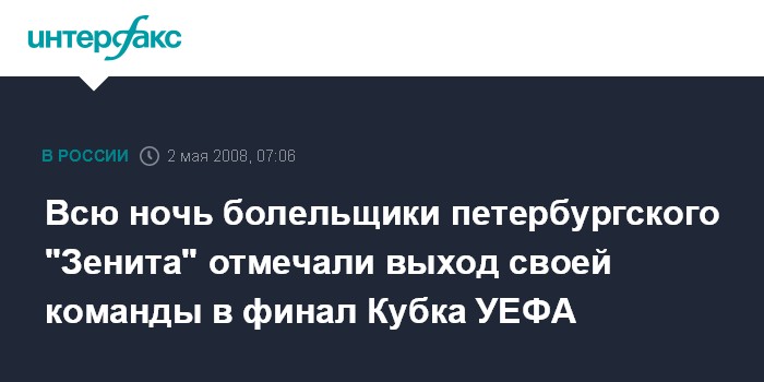 Как предает корреспондент "Интерфакса", болельщики "Зенита" сразу после победы отправились отмечать выход команды в финал Кубка "УЕФА". Часть фанатов ушла смотреть на развод мостов, другие стали купаться в ближайших водоемах.