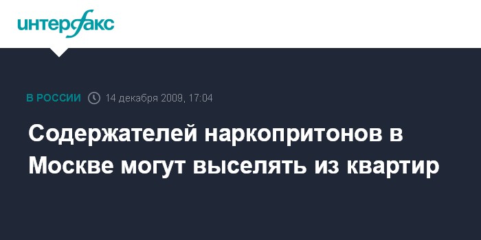 Шукшин отметил, что префектурам административных округов во взаимодействии со столичными ГУВД и управлением ФСКН, а также департаментом жилищной политики и жилищного фонда столицы поручено в первом квартале 2010 года проработать вопрос о возможности ухудшения жилищных условий либо лишения в судебном порядке жилых помещений лиц, использующих их для содержания наркопритонов.