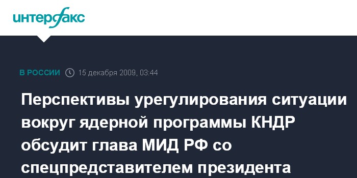 Перспективы урегулирования ситуации вокруг ядерной программы КНДР обсудит глава МИД РФ со спецпредставителем президента Франции